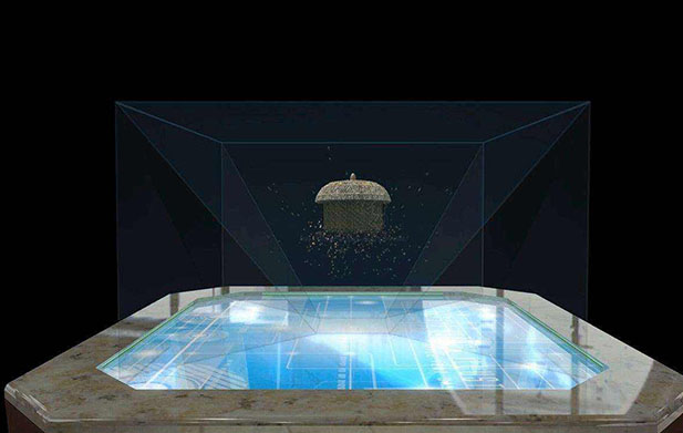 360度幻影成像,也稱為虛擬成像系統(tǒng)和空中成像系統(tǒng),主要將三維虛擬圖像投射并懸浮在真實場景中進行成像,從而營造出一種夢幻般的氛圍。展示效果生動逼真,讓人沉浸其中,無法自拔。